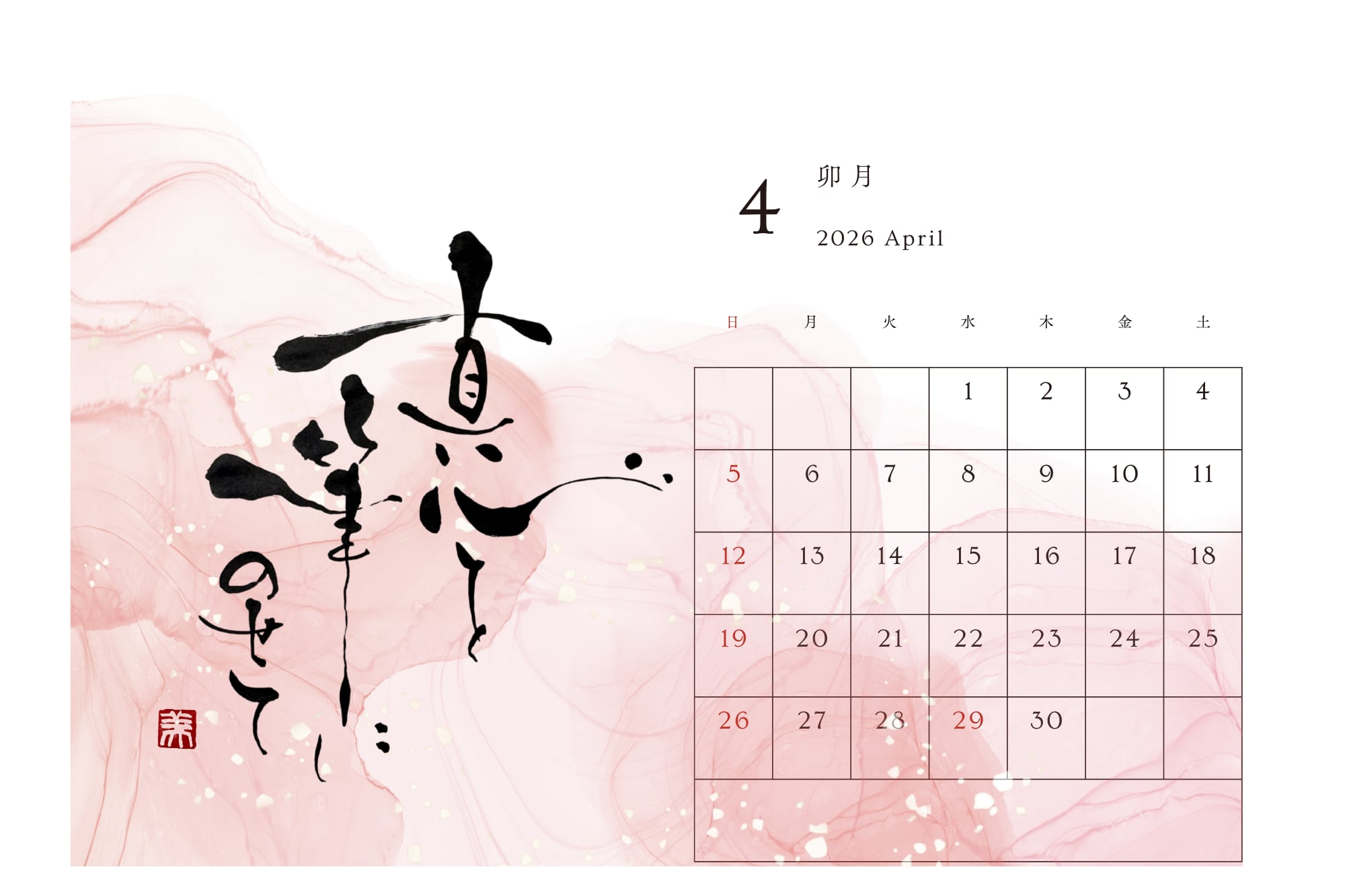 2026年4月~ 卓上カレンダー(送料別:クリックポスト)